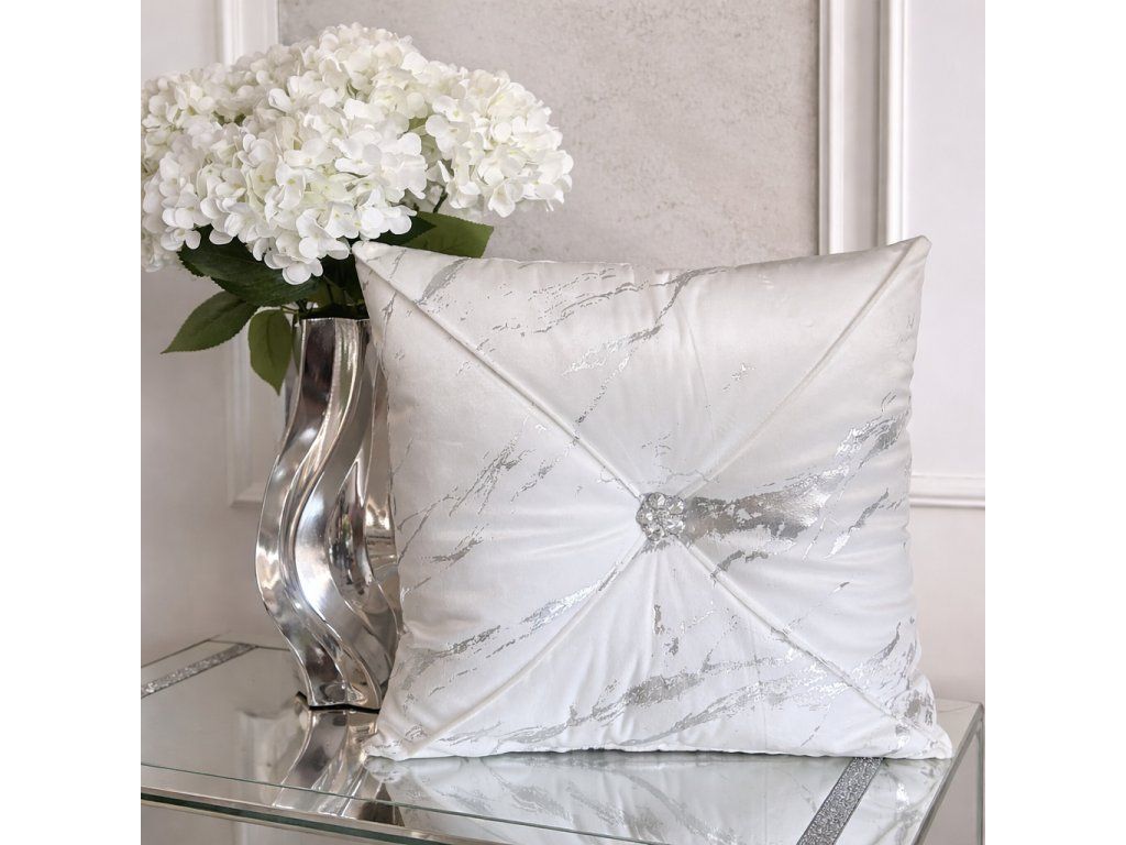 Vankúš bielo-strieborný s brošňou – elegantný detail, ktorý zaujme
