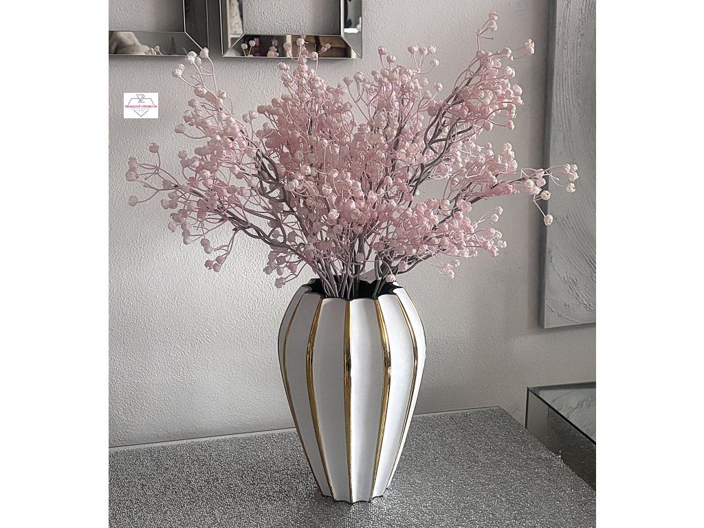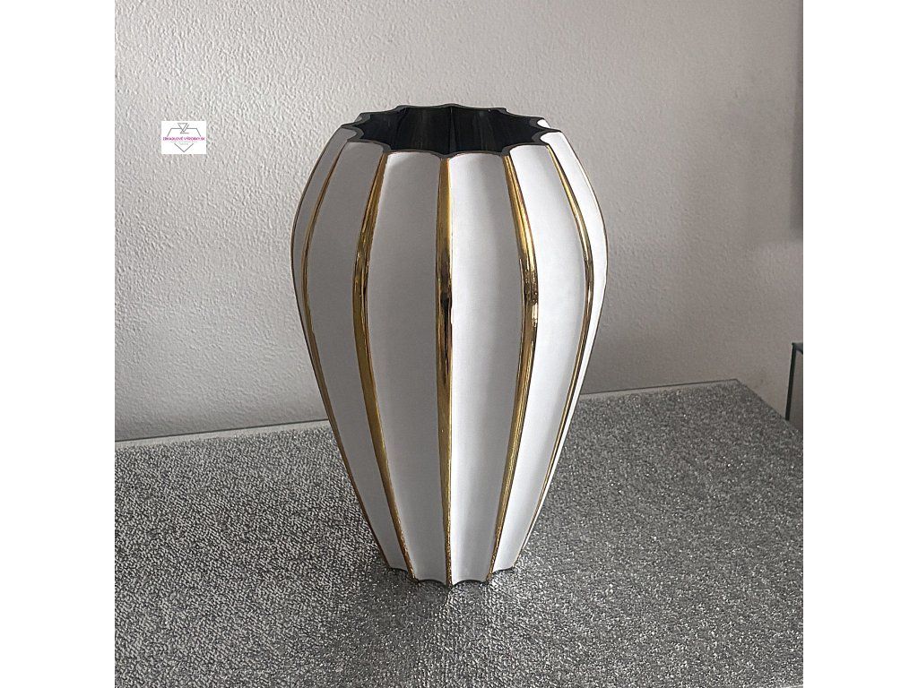 Moderná bielo-zlatá váza zo skla s výškou 25 cm. Elegantný dizajn so zlatými detailmi, ideálna na kvety a dekorácie do štýlového interiéru.