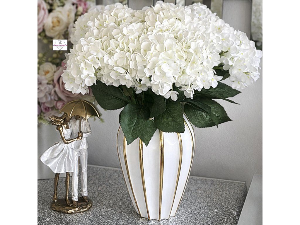 Elegantná bielo-zlatá sklenená váza s výškou 25 cm je nadčasovým doplnkom do moderného aj luxusne ladeného interiéru. Jemné vertikálne zlaté línie na bielom podklade vytvárajú sofistikovaný kontrast a dodávajú váze exkluzívny vzhľad.