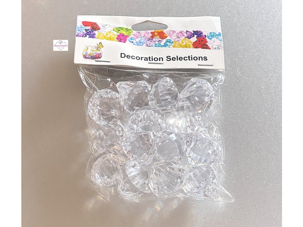Dekoračné akrylové kamienky v balení 14 kusov. Elegantný číry dizajn pre luxusné aranžovanie, svietniky, vázy a moderné dekorácie.