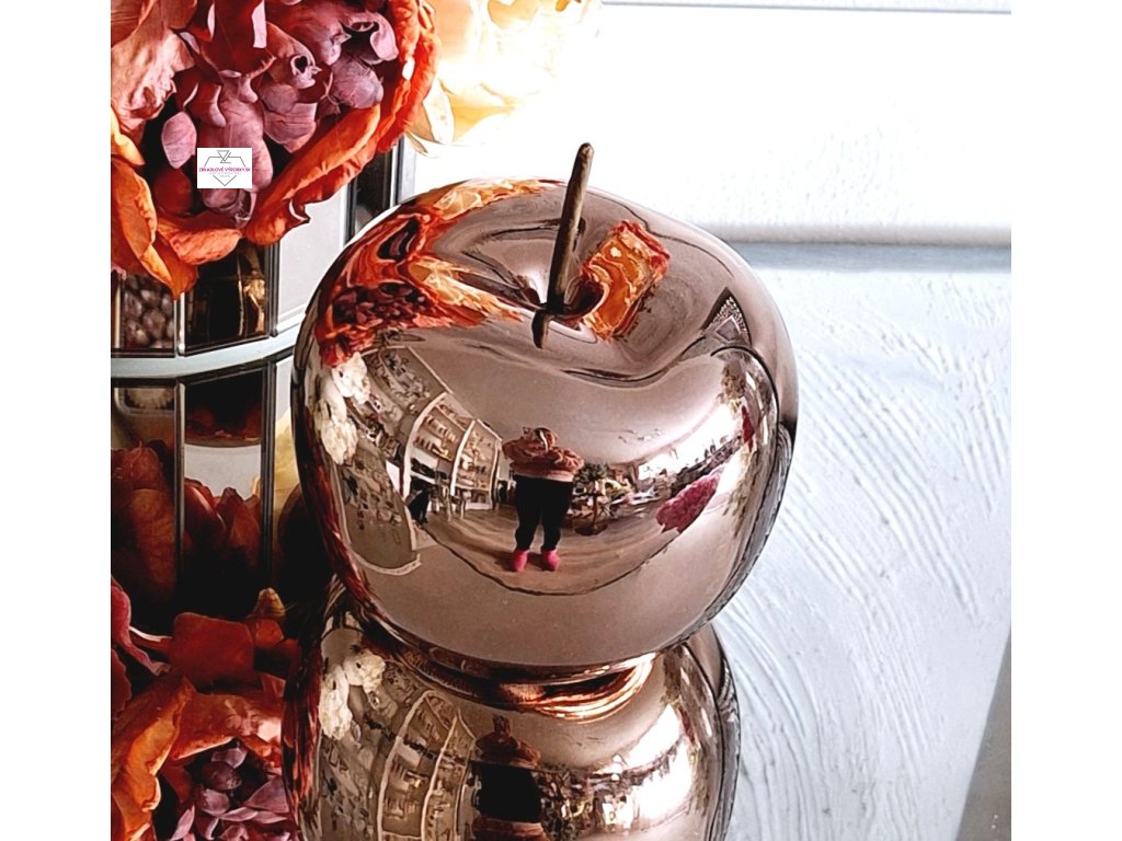 Medené keramické jablko s lesklým povrchom, rozmer 10×12 cm. Elegantná dekorácia do interiéru a skvelý darček pre milovníkov moderného štýlu.