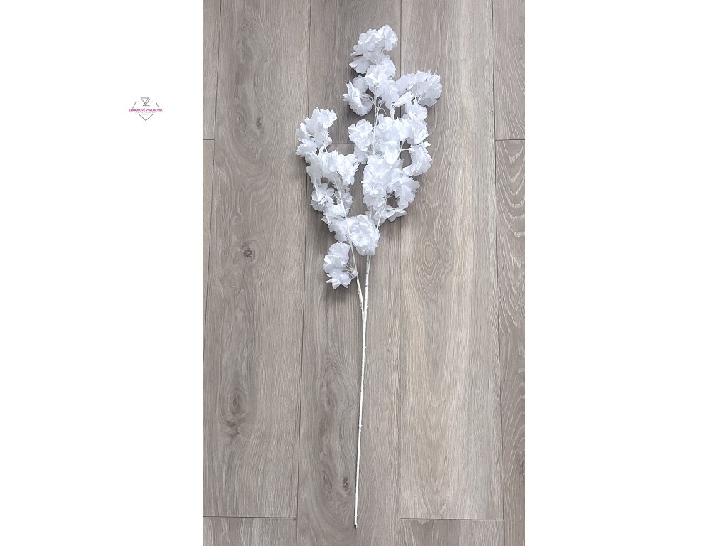 Biely dekoračný konár čerešne s výškou 95 cm. Elegantná umelá kvetina do vázy, ideálna na jarné aranžmány a moderné interiéry.