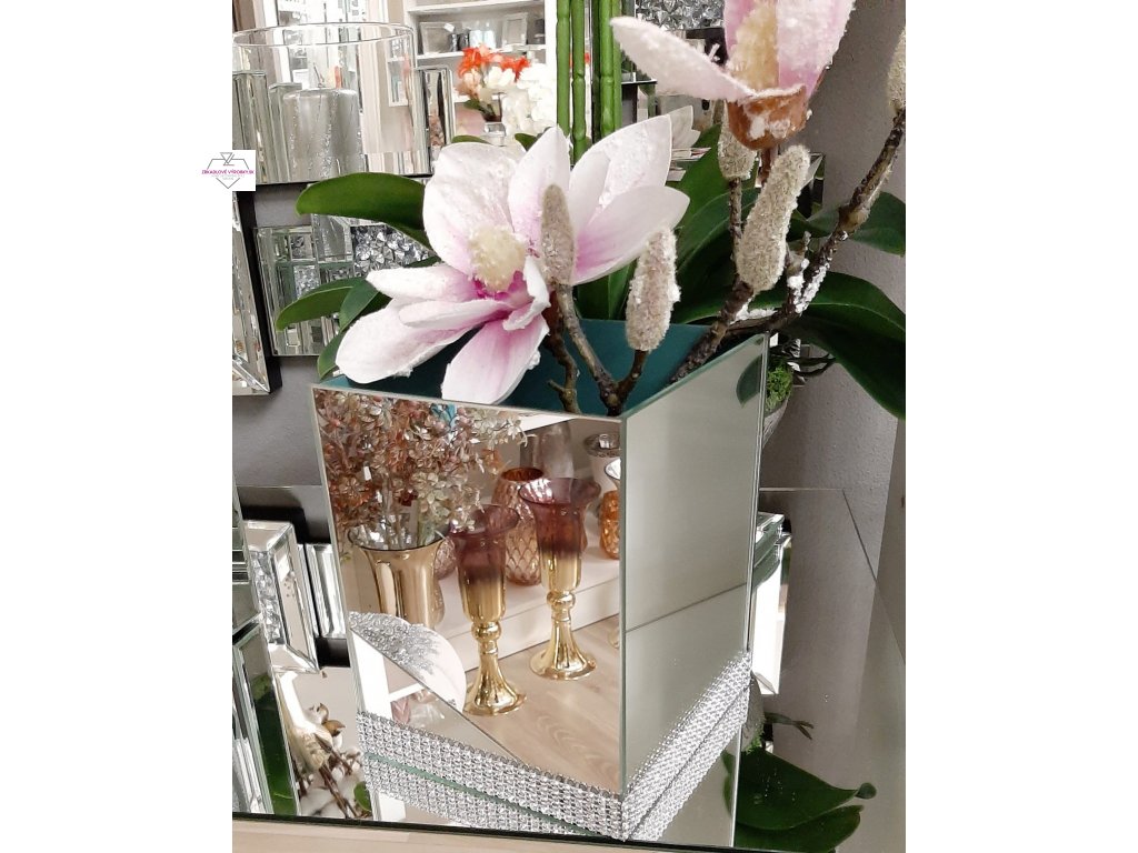 Zrkadlová krabička so štrasovým pásom 13x13x16 cm – elegantný doplnok do moderného interiéru. Ideálna na dekorácie, šperky alebo drobnosti.
