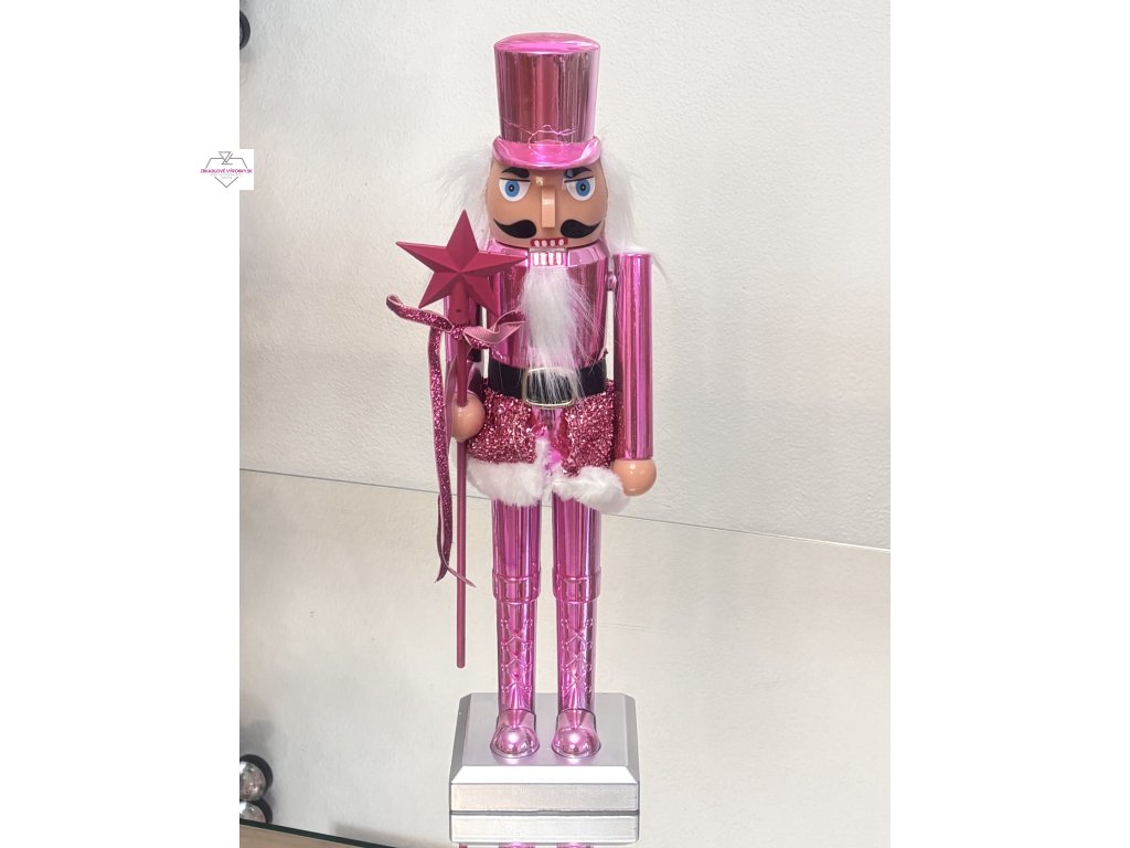Luskáčik v ružovo-striebornej farbe – elegantná vianočná dekorácia, ktorá spája jemnosť, lesk a noblesu. Dokonalý doplnok k vianočným sviatkom.