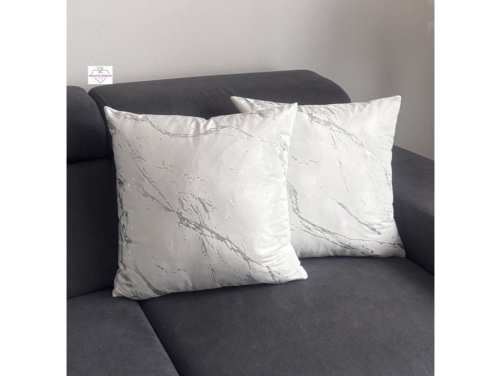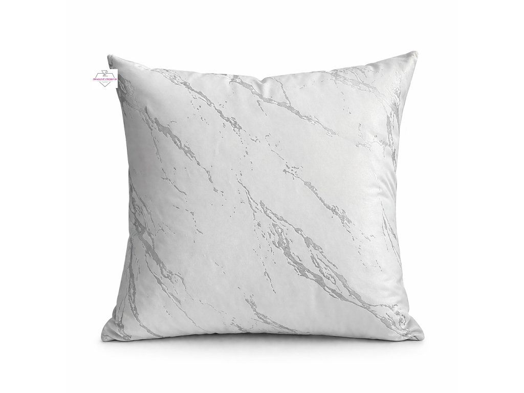 Luxusný zamatový poťah na vankúš s mramorovým vzorom v bielo-striebornom prevedení. Elegantný doplnok do moderného interiéru.
