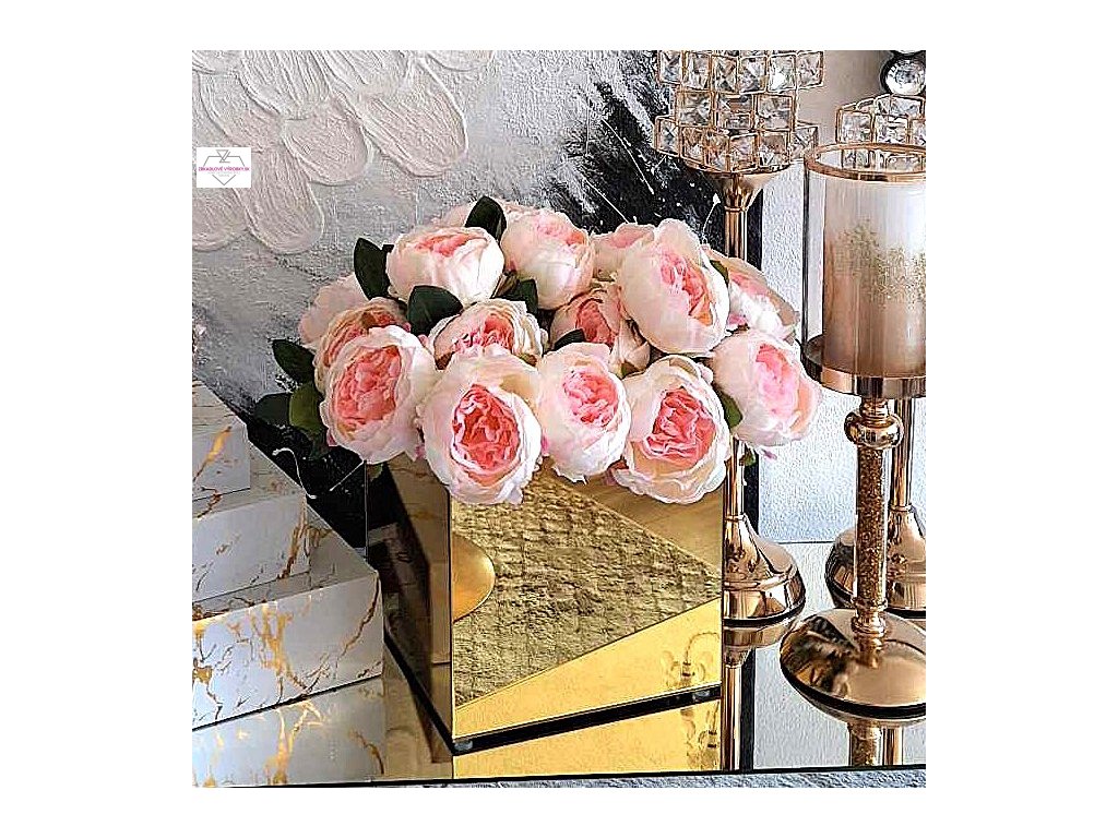 Štýlová nádoba zo zlatého zrkadla je elegantným doplnkom, ktorý dodá priestoru luxus a lesk. Ideálna na aranžovanie kvetov, dekorácií alebo ako samostatný dizajnový prvok. Vďaka zrkadlovému povrchu nádherne odráža svetlo a vytvára exkluzívny efekt v každom interiéri.