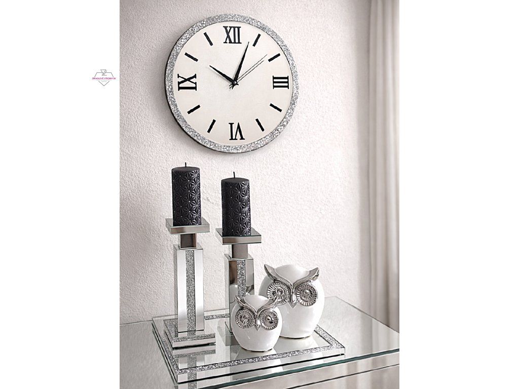 Tieto zrkadlové nástenné hodiny so strieborným zdobením predstavujú elegantný doplnok, ktorý dodá interiéru luxusný a upravený vzhľad.