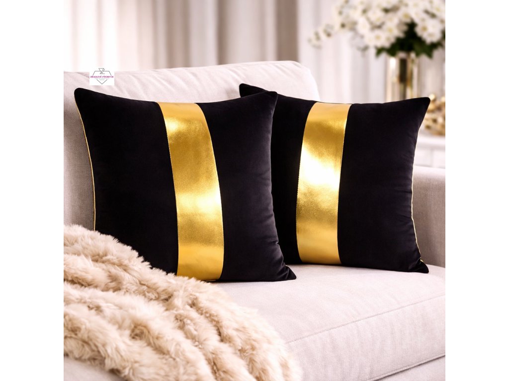 Zamatový poťah na vankúš so zlatým pásom – čistý luxus v modernom štýle