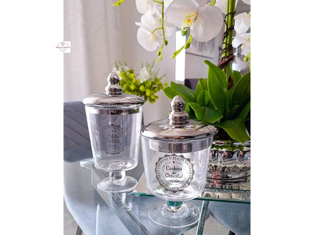 Elegantné sklenené nádobky s vrchnákom sú praktickým aj dekoratívnym doplnkom do kuchyne, jedálne či obývačky. Číre sklo v kombinácii s lesklým strieborným vrchnákom pôsobí luxusne a zároveň nadčasovo.