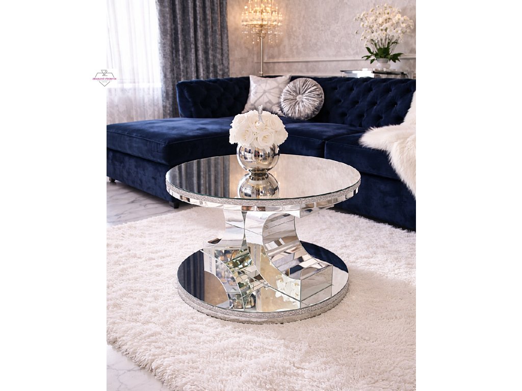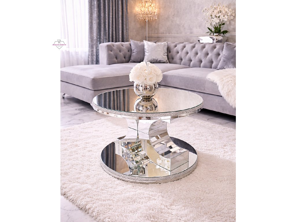 Na rozdiel od hranatých stolíkov pôsobí okrúhly tvar mäkšie a prirodzenejšie. Zrkadlový povrch zároveň odráža svetlo, opticky zväčšuje priestor a vytvára luxusný efekt.