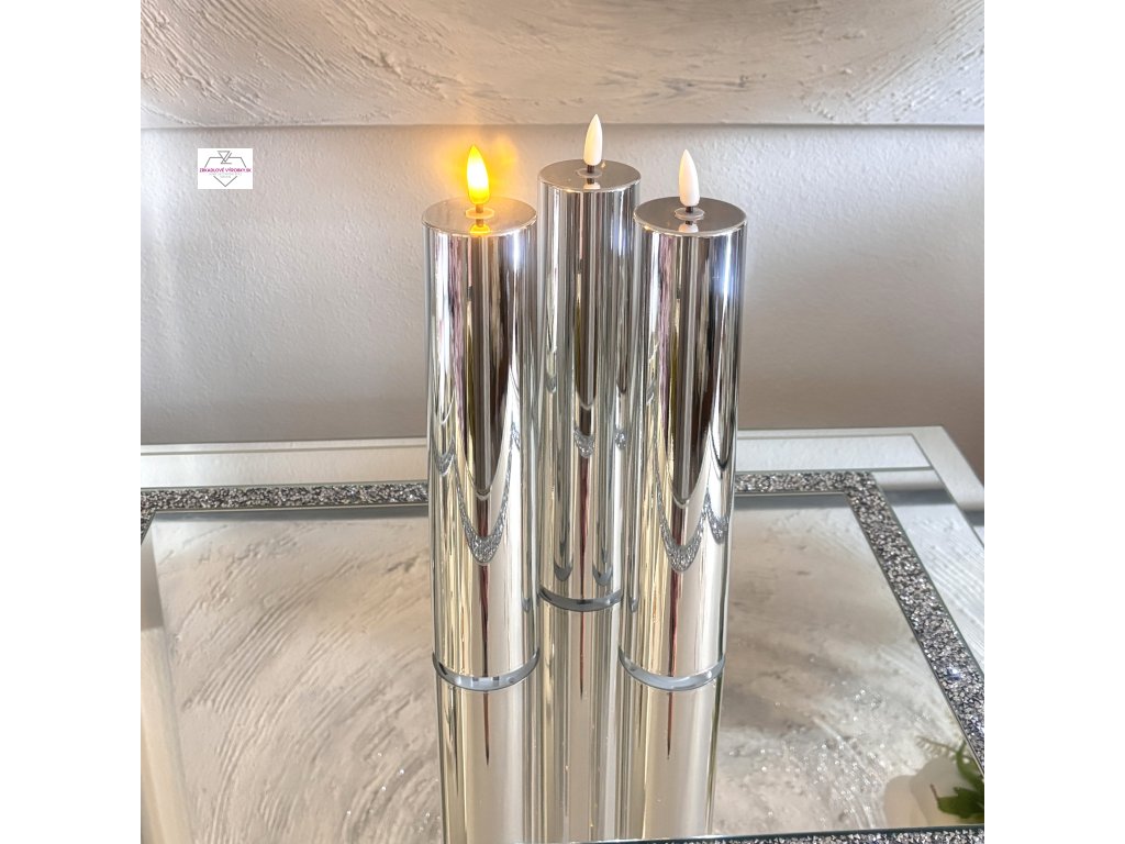- Strieborná LED sviečka s efektom plameňa