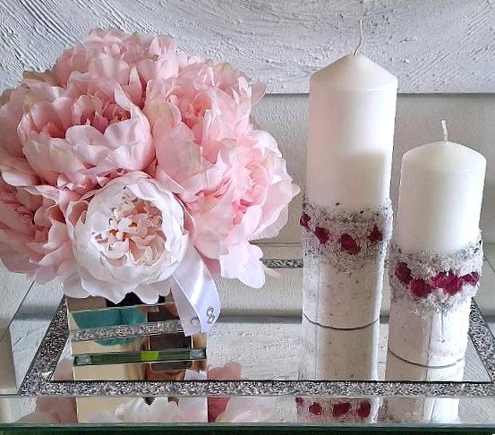 Dekoratívne sviečky s ružovými kamienkami dodajú vášmu interiéru jemný a romantický nádych. Ich elegantný dizajn vynikne v modernom aj klasickom priestore – ako súčasť aranžmánu, na svietniku či ako samostatná dekorácia.