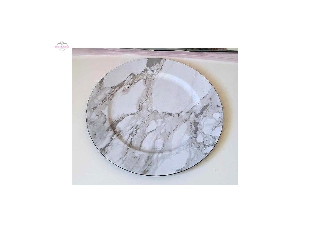 Elegantný klubový tanier s mramorovým vzorom je štýlovým doplnkom každého prestretého stola. Vďaka realistickému dizajnu mramoru pôsobí luxusne a moderne, no zároveň je ľahký a praktický – vyrobený z kvalitnej umelej hmoty. Tanier má priemer 33 cm, čo z neho robí ideálny podkladový (servírovací) tanier na slávnostné stolovanie, svadby, oslavy alebo výnimočné príležitosti.