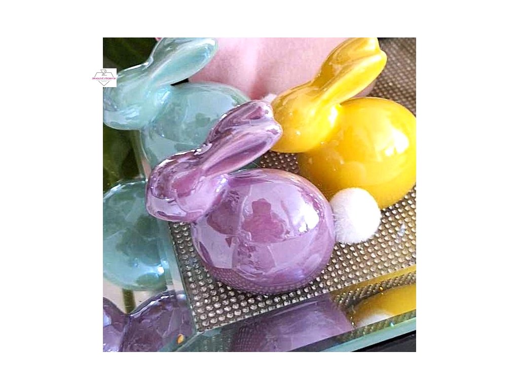Keramická figúrka zajačika vo fialovej perleťovej farbe pôsobí jemne a štýlovo. Krásne doplní jarné aj veľkonočné aranžmány či poličku v interiéri.