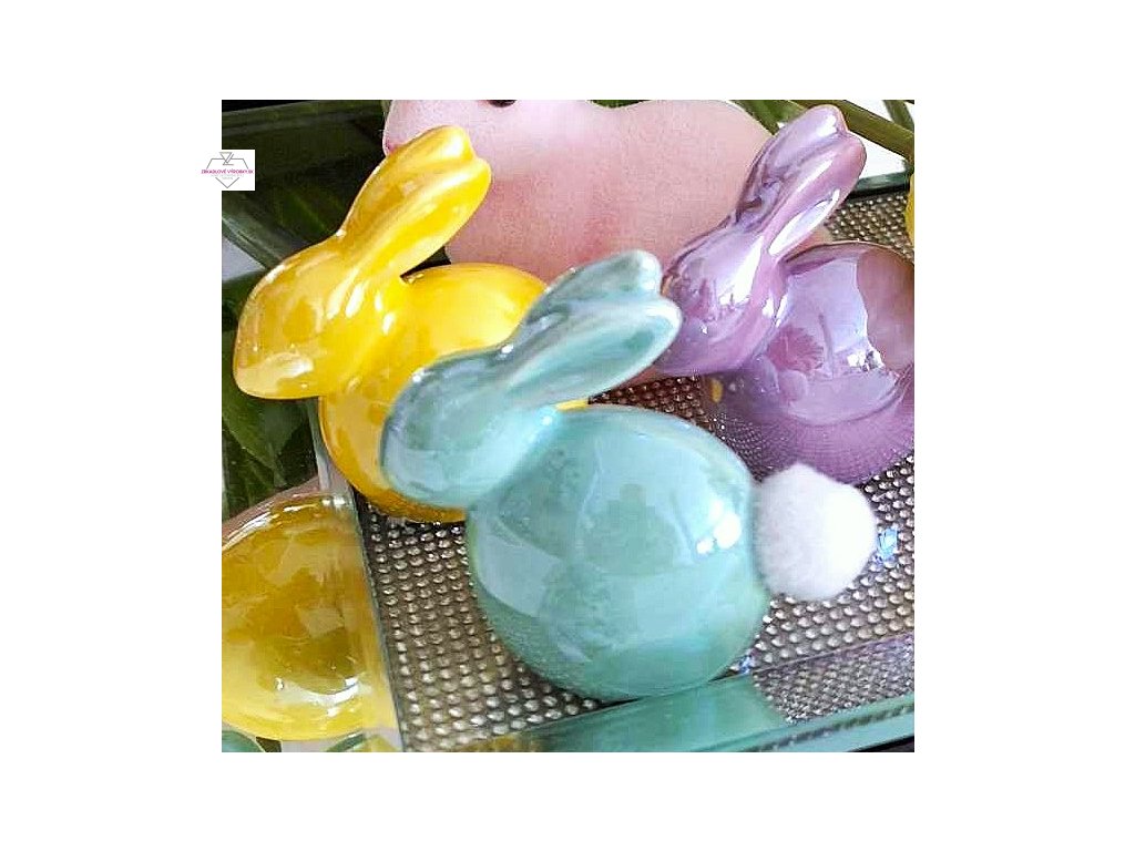 Keramická figúrka zajačika v zelenom perleťovom prevedení dodá vášmu interiéru sviežosť a jemný lesk. Ideálna ako jarná dekorácia na poličku, stôl či do aranžmánu.
