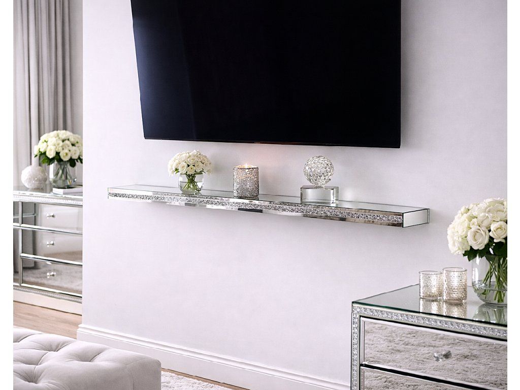 Zrkadlový povrch odráža svetlo, opticky zväčšuje priestor a zároveň vytvára elegantnú plochu pre vaše dekorácie.
