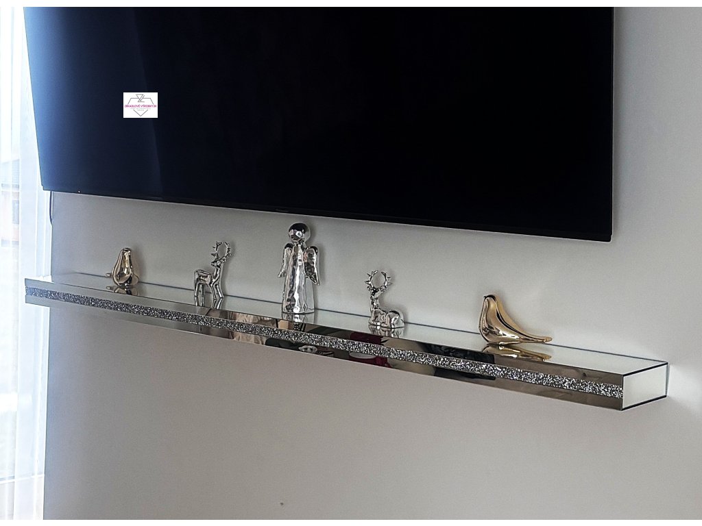 Elegantná zrkadlová polica na stenu je štýlovým doplnkom pre moderné aj luxusné interiéry. Vďaka čistej línii, zrkadlovému povrchu a jemnému striebornému zdobeniu pôsobí exkluzívne a zároveň vzdušne. Predĺžený rozmer 160 cm ju predurčuje na dekorovanie stien v obývačke, chodbe, spálni či nad komodu.