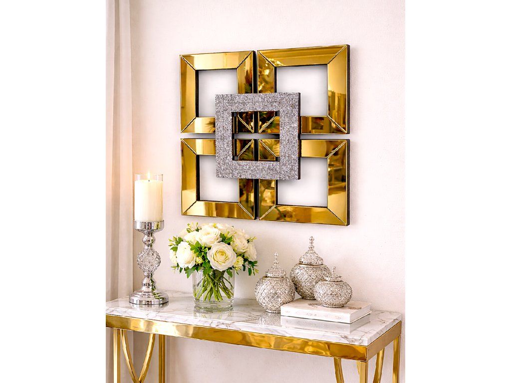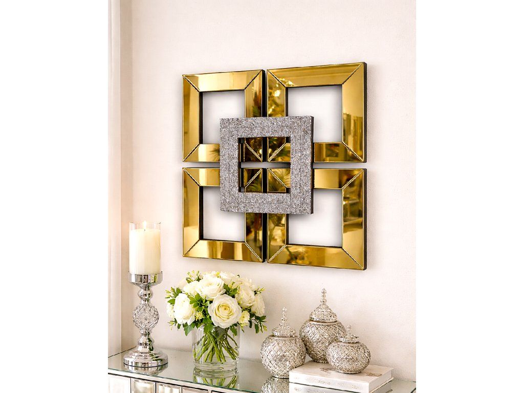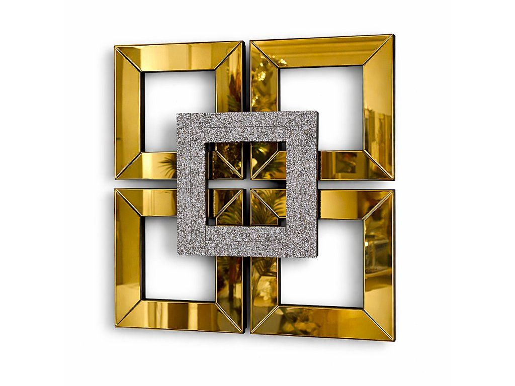 Zrkadlový panel v zlatom prevedení 40x40 cm s dekoratívnym prvkom. Elegantný doplnok do interiéru.
